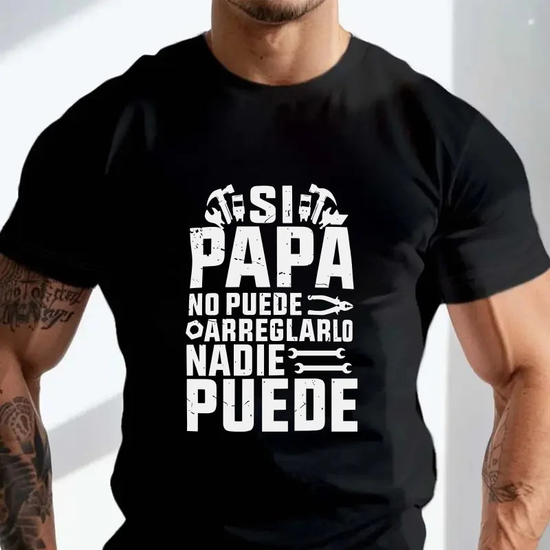 T-Shirt Masculina retro com estampa "If Dad Can’t Fix It We’re Screwed" para homens, estilo casual motard da Tudo & Mais.