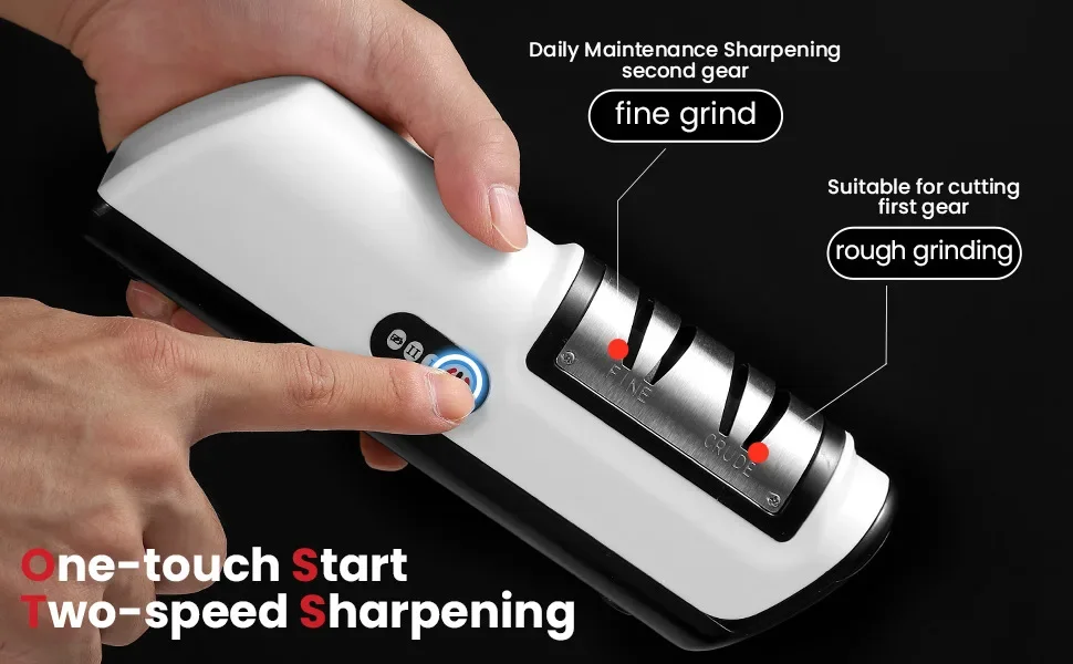 Com quatro níveis de afiação, adapta-se a diferentes necessidades: afiação grossa, afiação média, polimento e manutenção do fio. O sistema elétrico proporciona resultados consistentes, mesmo para utilizadores sem experiência, evitando danos na lâmina.